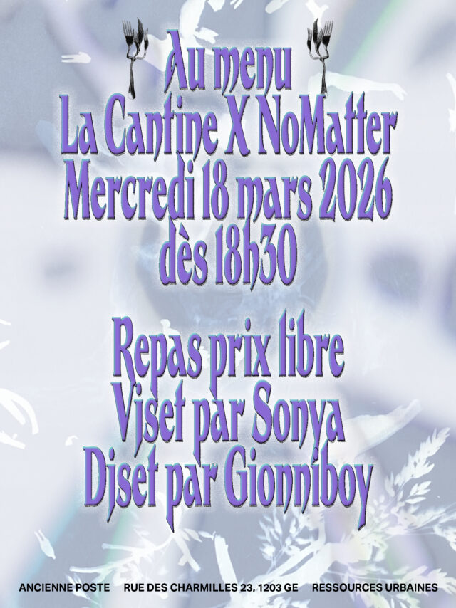 ❤︎ Repas prix libre à La Cantine de l’Ancienne Poste ❤︎Ancienne Poste des Charmilles (rue des Charmilles 23) Le mercredi 18 mars, La Cantine s’associe à NoMatter : un collectif d’artistes...